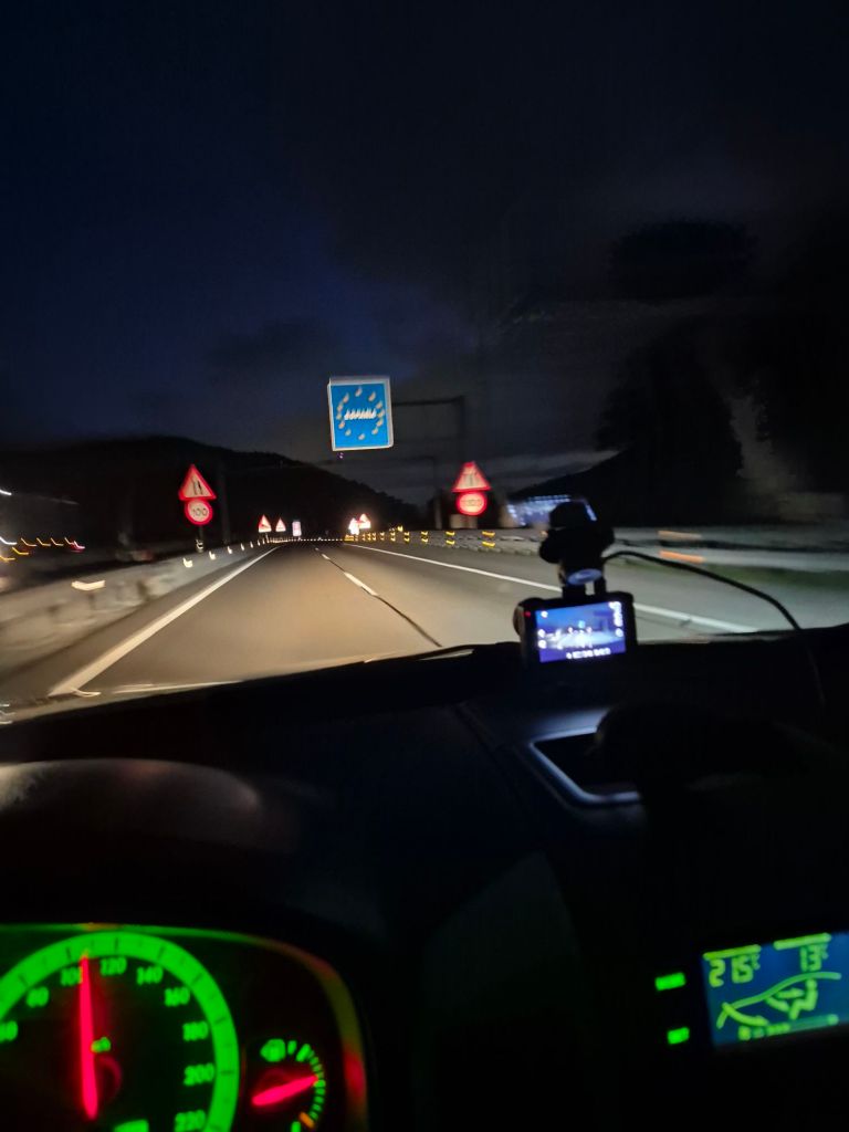 Leider ist es schon dunkel. Mittlerweile bin ich in der Nähe von Barcelona. Für heute bin ich genug gefahren. Ich bleibe hier auf einer Raststätte und werde morgen weiter in Richtung Valencia fahren. Dort ist das Wetter besser.